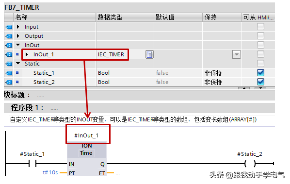 (3)FC和FB的INOUT变量中新建IEC_TIMER等类型变量(LAD/FBD),