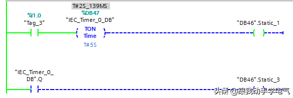 (3)线圈型定时器如果出现在网络段中间时不影响RLO的变化,如图14所示,"DB46".Static_1和同步变化。
