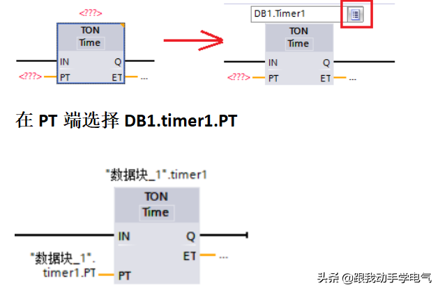 (1)功能框定时器上可以定义Q点或ET,在程序中可以不必出现背景DB(或IEC_TIMER类型的变量)中的Q点或者ET;而线圈型定时器必须使用背景DB(或IEC_TIMER类型的变量)中的Q点或者ET;