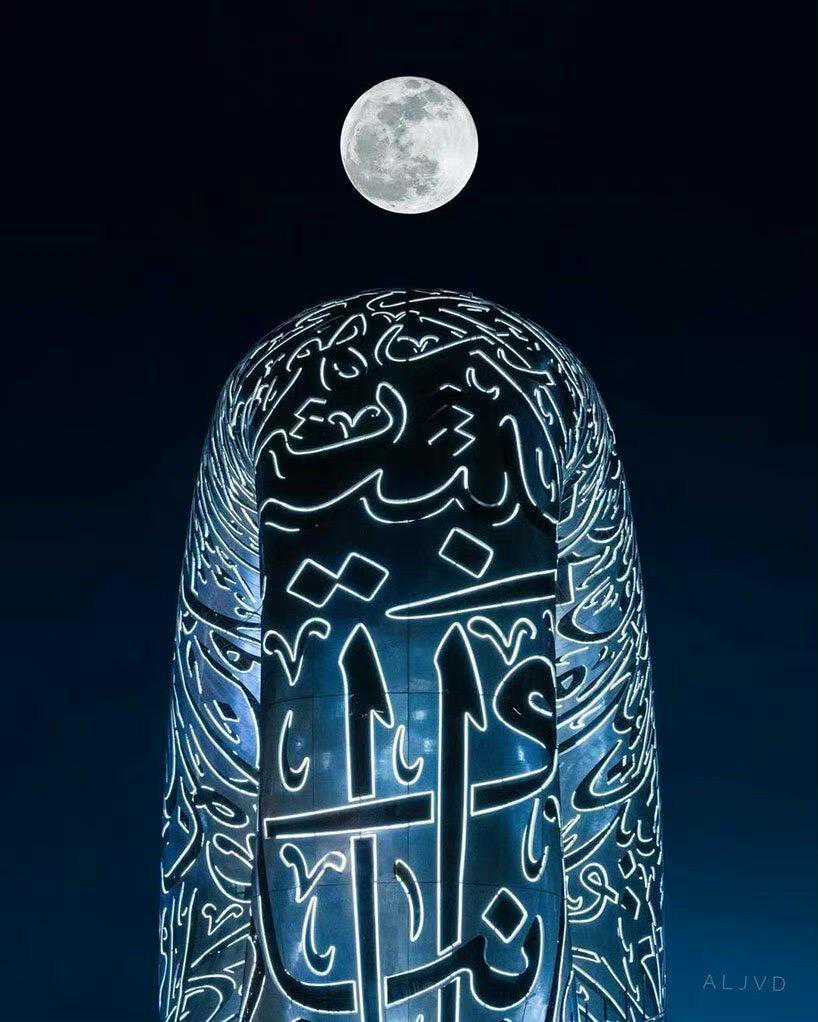 建筑外壳布满阿拉伯书法图案。@mmuseumofthefuture图