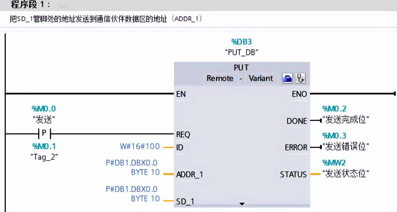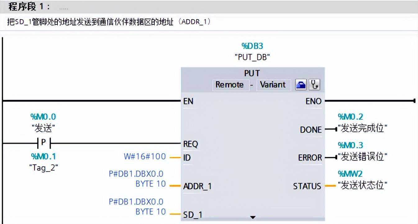 S7-1200CPU的为S7通信提供了两条用于读写数据的指令“PUT”和“GET”,使用PUT个GET指令对伙伴CPU进行读写时,不管伙伴CPU是处于运行模式下还是停止模式下,S7通信依然可以正常进行。