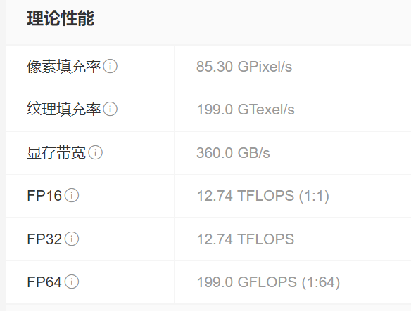 这大概是一个什么水平呢?以下是桌面端RTX306012G的理论性能,MTTS80的显存带宽和浮点性能都比RTX3060略高一点点。