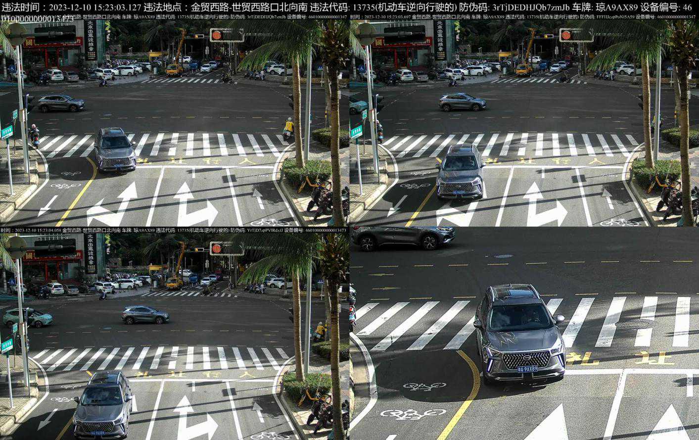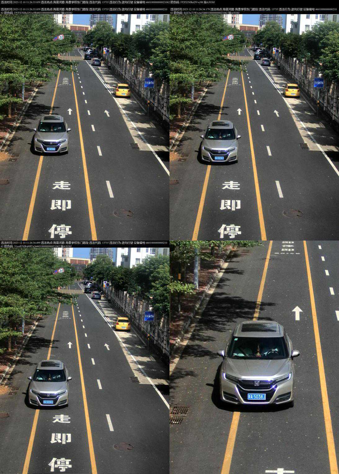 以下曝光一批机动车逆向行驶的违法行为,根据《道路交通安全法》第90条、《海南省实施道路交通安全法办法》第64条第一款第20项的规定,交警部门将处以罚款200元,记3分的处罚。希望广大驾驶人引以为戒,自觉遵守交通法规,安全文明出行。