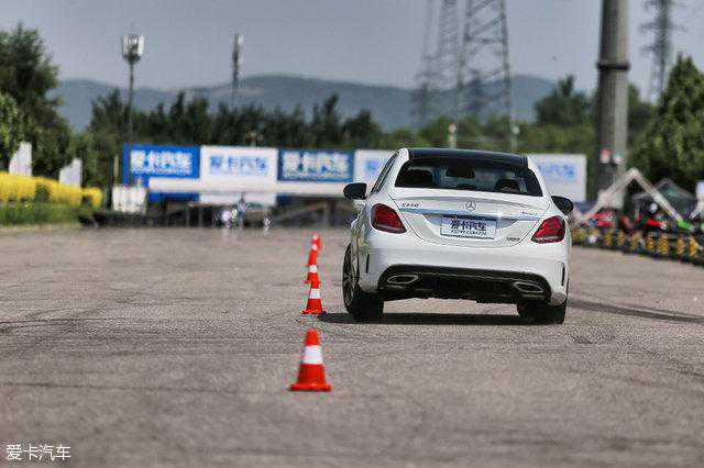 奔驰C2004MATIC运动版的四驱系统属于全时四驱系统,正常行驶下,前、后轴的动力输出分配为45:55,驾驶风格偏向于后驱。所以,在绕桩过程中,它给驾驶者的感觉还是更像一部后驱车的感觉,转向比较积极活跃。