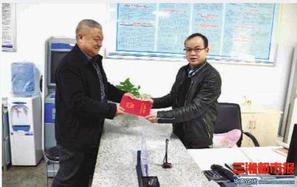 1月5日上午,浏阳市大瑶镇国土资源所所长罗其晏向南山村村民李运松颁发我省首张乡镇不动产证。