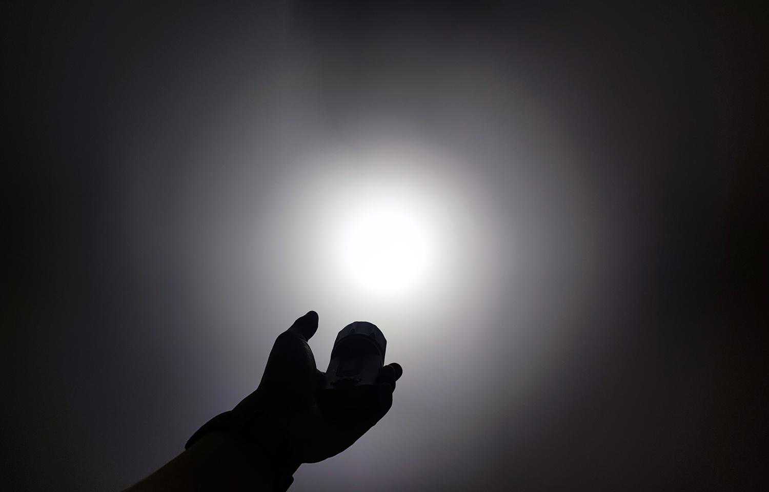 当TA31开启高亮、极亮、爆闪等档位时,如果灯头靠近前方物体15厘米左右,就会自动降低输出至低亮320lm档位,当距离增大后,又能自动恢复此前档位亮度,确实很方便安全。