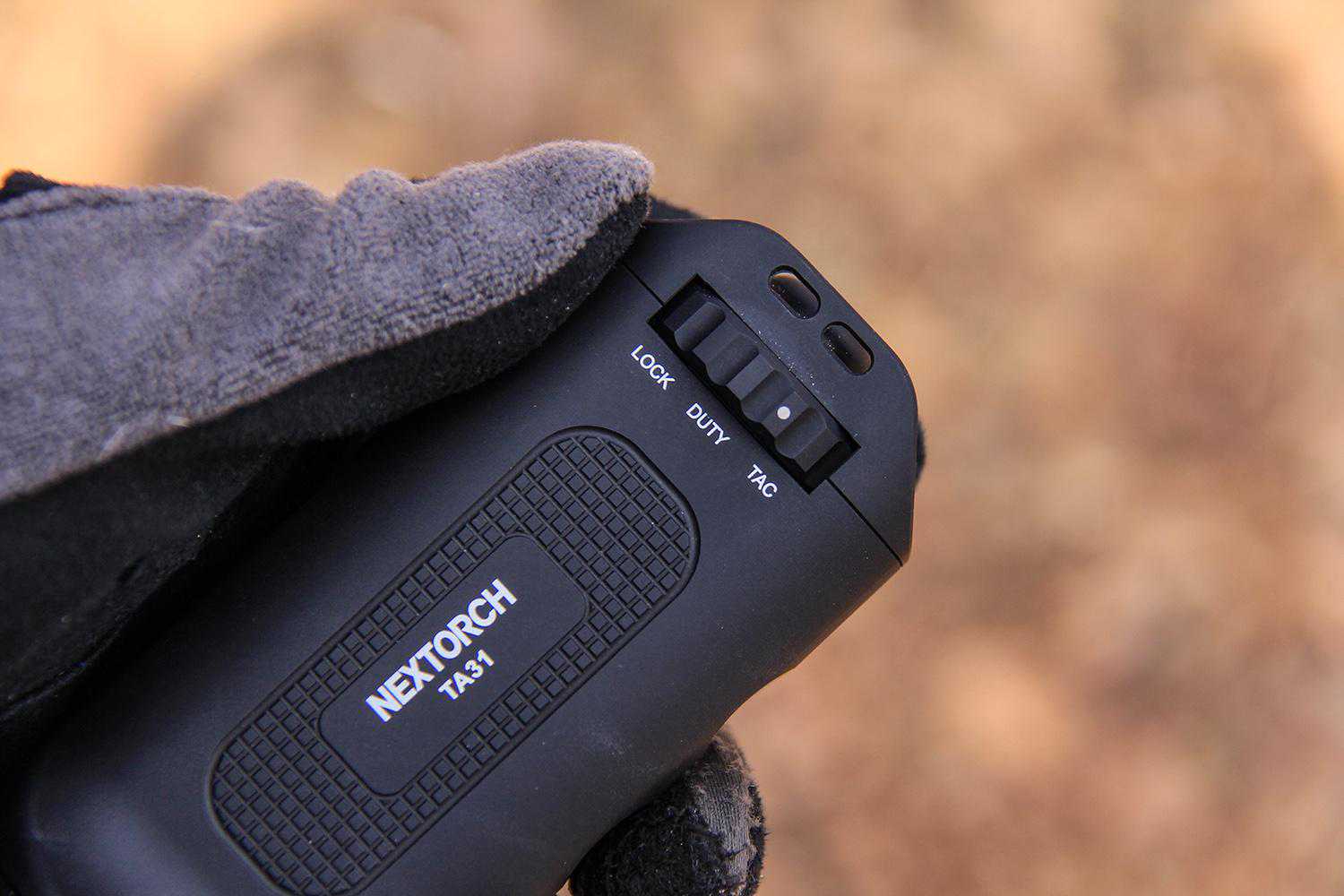 如果需要最高亮度,需要将拨盘至于TAC模式。此时,轻按开关,TA31就能迅速开启10000lm的极亮档位,发挥最大能力,松手即灭,实现战术照明功能。