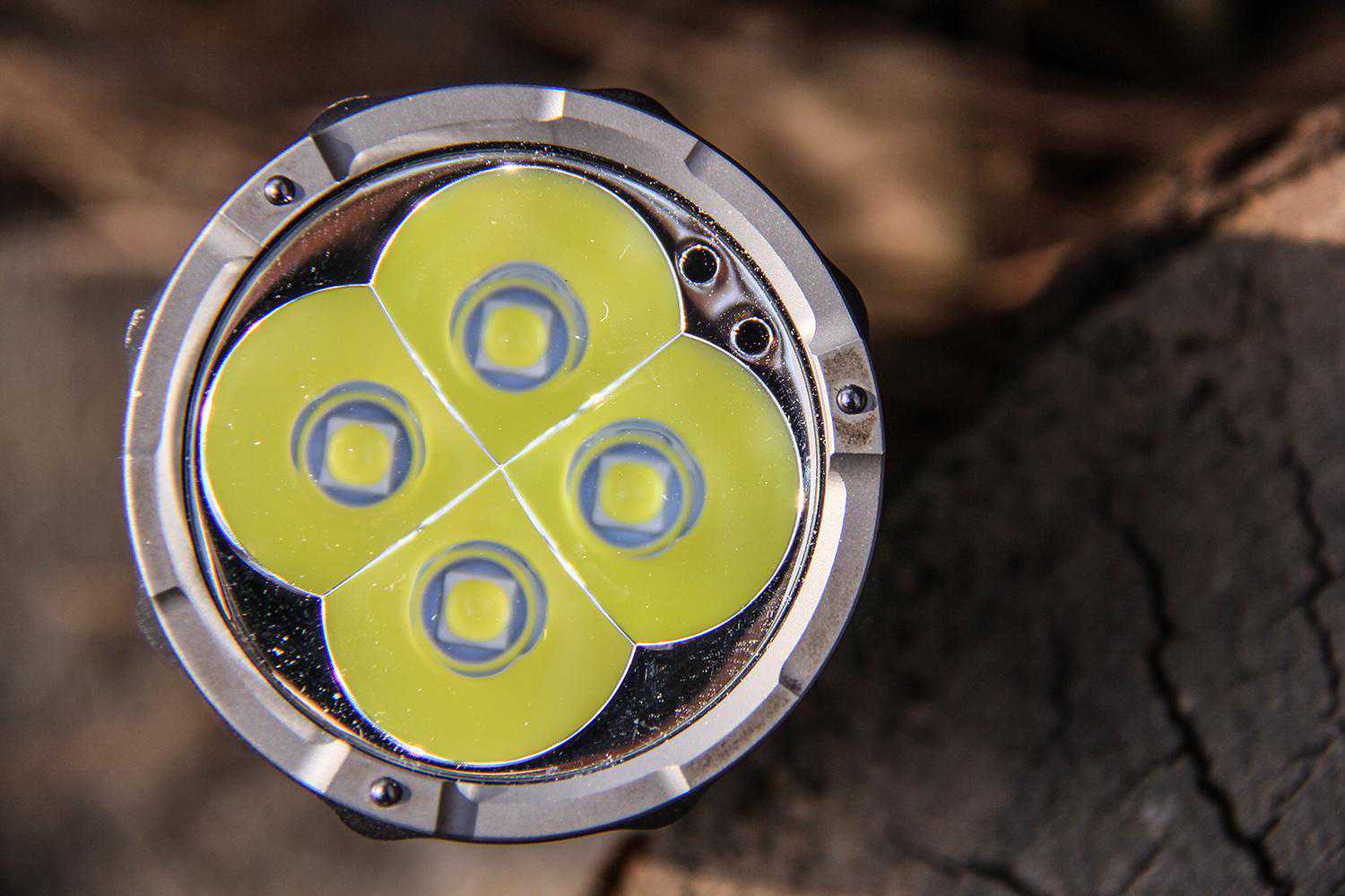 TA31是我手上第一只多灯珠的纳丽德手电,使用了4颗较大面积的高性能带果冻灯珠,每颗最高光通量达到了2500lm,灯珠安装居中对称,四颗灯珠排列整齐,我这强迫症也没得可挑剔。