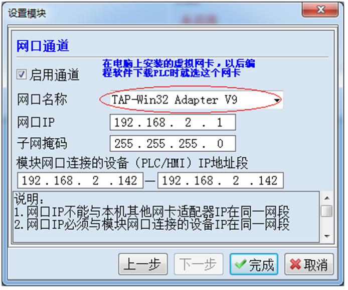 网口IP:该IP只要求和你远程PLC的IP一个网段,并且和其同网段的设备不冲突即可。如上图,和网口连接的远程PLC地址为192.168.2.142,网口IP随便设置为该网段的一个IP,和这些PLC不冲突即可。