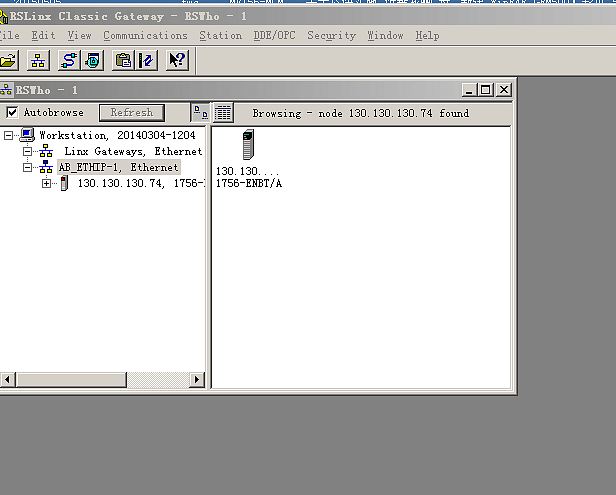 6、在AB的RSLinxClassic软件中找到AB系列PLC后即可上传、下载程序