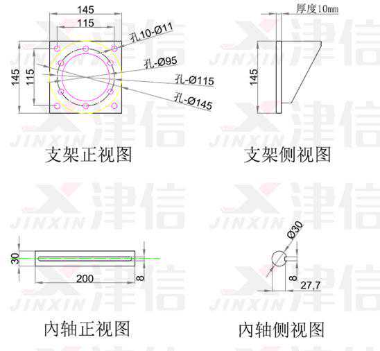安装OGD需要按现场条件准备辅助支架和转动轴,这些附件的机械尺寸如下图:
