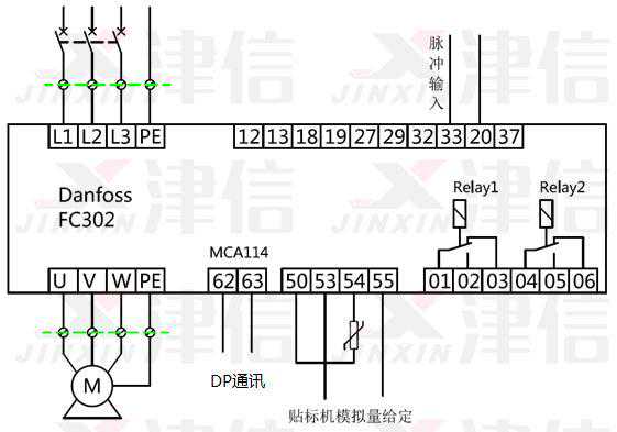 第一种方案,不动PLC程序,一台FC302做主机,加装MCA114Profibus-DP通讯卡,接入原DP现场网络。主机接线图如下: