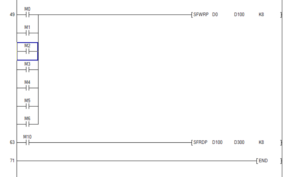 综上判定,读取数据指令SFRDP中的第三个操作数一定要大于SFWRP中的第三个操作数,但是当分配的队列寄存器足够多的时候,比如大于实际要存的数据,则第三个操作数的设定值可以相等,所以使用SFWRP与SFRDP指令时,实际存储的数据一定不能大于所分配的队列寄存器。