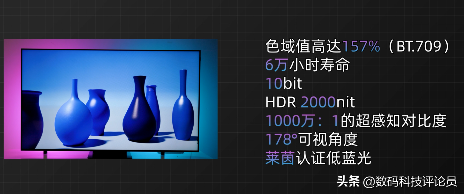 MiniLED技术也是目前中高端电视最常见的方案,注重画质的小伙伴,我肯定建议优先考虑MiniLED。而在MiniLED之上,其实还有个进阶版就是QD-MiniLED。