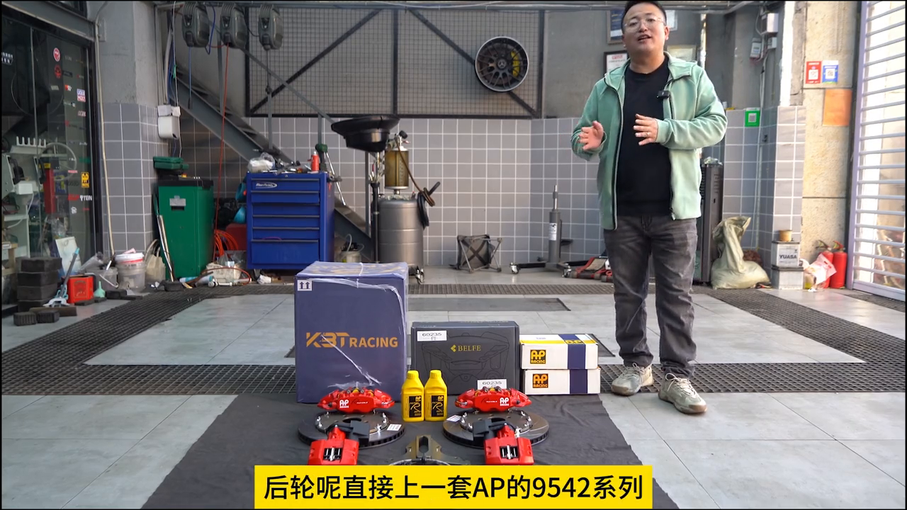 我跟车主并没见过面,当时聊天的时候说要装一个加大盘,但是他考虑到后轮如果上到380的盘可能会接近合头位置,有很大一块磨不到,怕生锈丑。我说对的,确实有这种情况。而且我找到了之前装的案例,发给了车主看了一下。最后车主说问一下我有什么其他的搭配,所以我给他推荐了后轮直接上一套AP的9542系列,搭配一个380的盘。