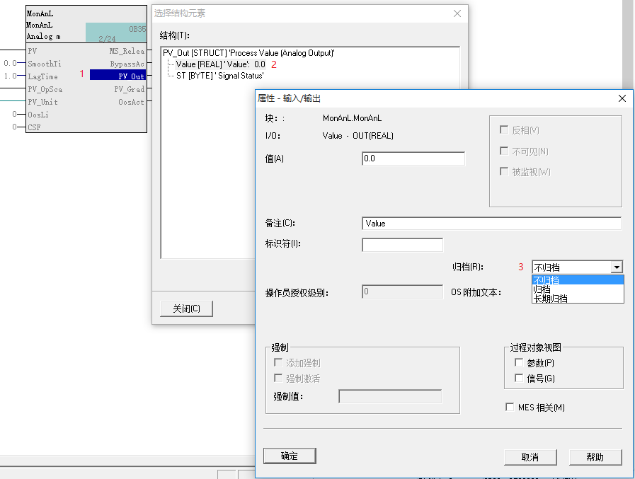 上图中的属性框都是双击弹出,此操作为设置某个值的归档属性。