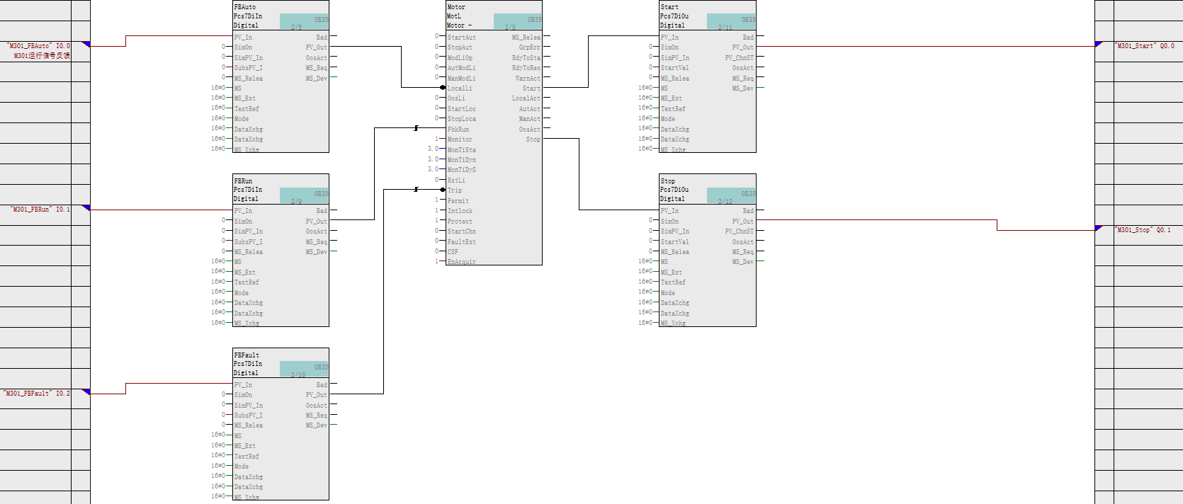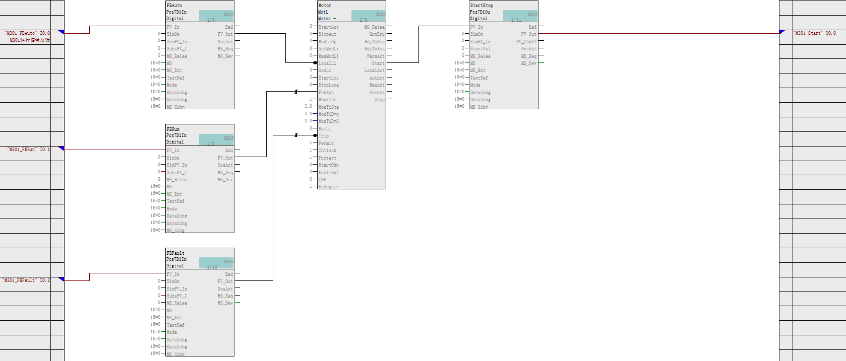 典型应用:普通电机连锁控制,各条件没有连接,在实际项目中根据控制要求连接相应的条件。