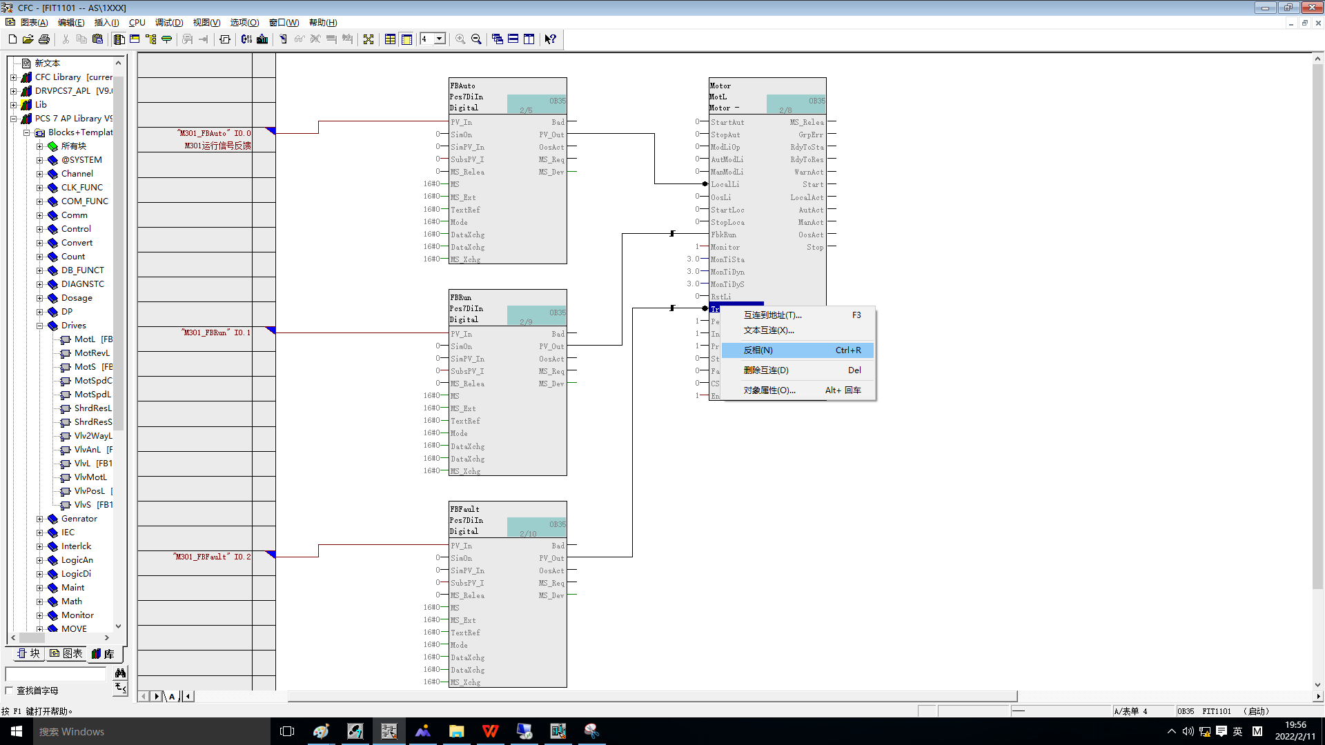 4.功能块调用及块基本属性打开一个CFC,操作如下图: