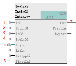 Interlck包括Intlk02(FB1824),Intlk04(FB1825),Intlk08(FB1826),Intlk16(FB1827),使用方法都是一样的,不同的是连锁条件的数量分别是2个、4个、8个、16个。以Intlk02(FB1824)为例讲解。