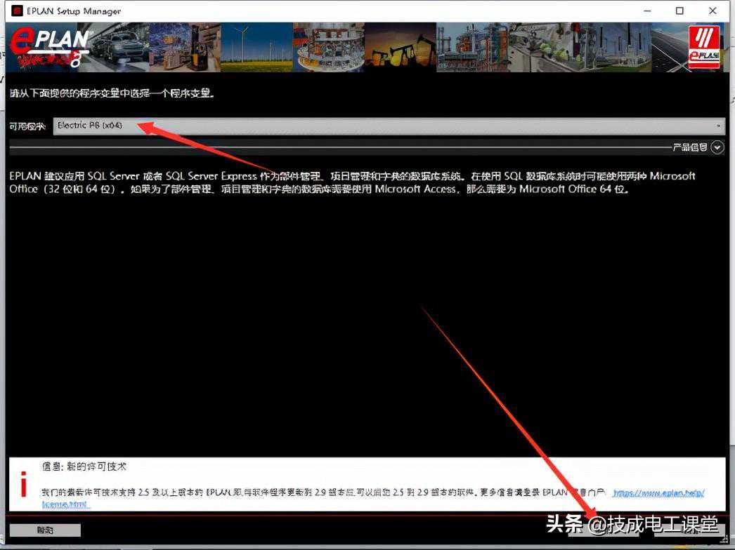 同时提示:EPLAN建议应用SQLServer或者SQLServerExpress作为部件管理、项目管理和字典的数据库系统。在使用SQL数据库系统时可能使用两种MicrosoftOffice(32位和64位)。如果为了部件管理、项目管理和字典的数据库需要使用MicrosoftAccess,那么需要为MicrosoftOffice64位。也就是说我们的EPLAN软件是在MicrosoftOffice软件下运行的,必须在PC端已安装了MicrosoftOffice软件才行;(建议装2013版本以上)