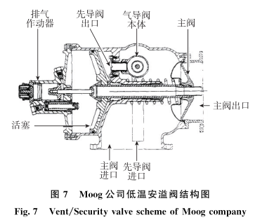 单机内部冗余的典型案例体现在阀门导向方面,如Moog公司低温安溢阀(图7)设计的碟片弹簧浮动导向、板簧浮动阀芯导向以及弹簧浮动阀芯导向,浮动阀芯结构不存在滑动摩擦,消除了由于摩擦产生多余物的风险,以及高低温环境下由于膨胀系数不一致导向发生卡滞的风险,提高了阀门动作的可靠性,延长了阀门的使用寿命。