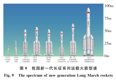 我国运载火箭已经形成小型、中型、大型、重型的系列化型谱规划(图9),实现运载能力的有效覆盖,并凝练出可靠性、经济性、先进性、适应性、融合性和带动性6项发展原则。