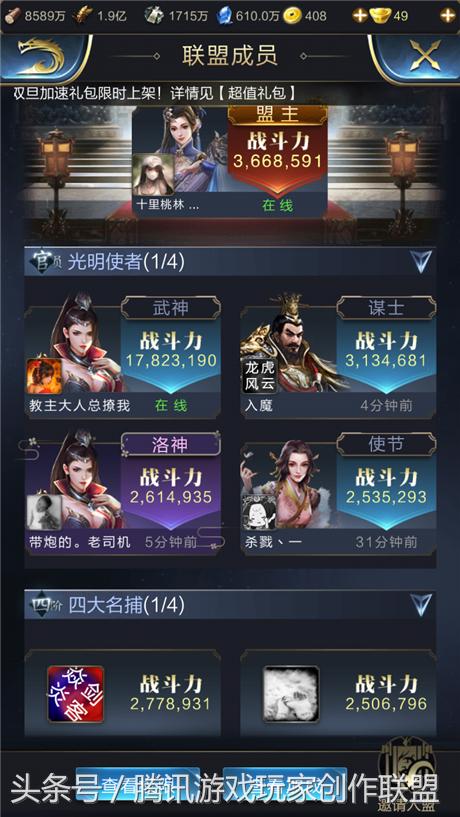 十里桃林、伴君:我心态好其实是因为我不在意这个战力之类的事情,有次我在国频聊天,聊着聊着就睡着了,然后我主城就被人打了,家里几千万上亿的资源就被人拿走了。不过好的是我全程都在睡觉,也不知道过程有多曲折,总之起床了资源就没有了。