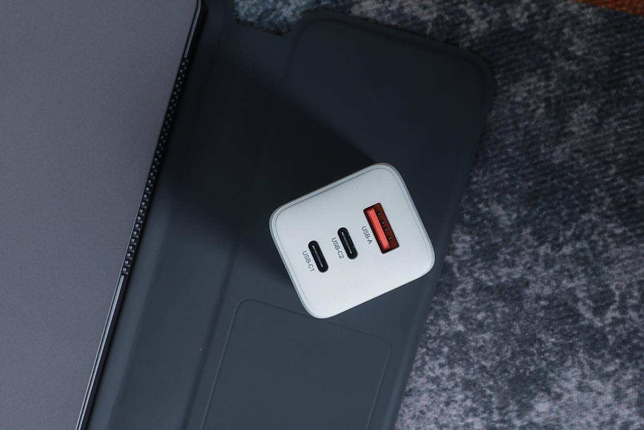 型号为:PT65-A12C-WH-BP,Orico氮化镓三口65W快充与原装充电头对比之后就能看出效果了,体积同比只有一半,可以说更加轻盈了,更配得上酷比魔方随行本iWorkGT该款Win11平板,充电头采用白色+条纹设计,插头则是采用折叠式,方便平时收纳。