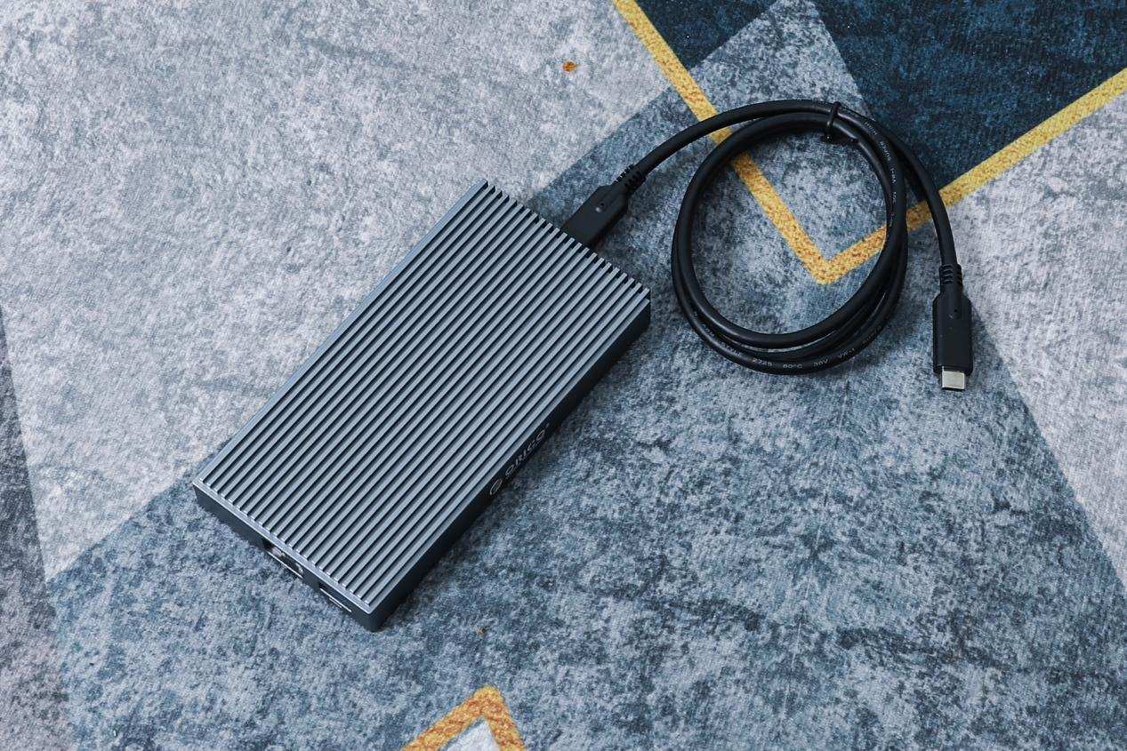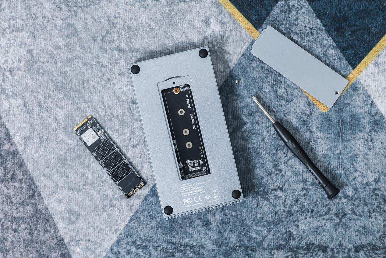 远不止于此,还拥有一个千兆RJ45网口、接口、Audio/Mic音频麦克风、Type-C接口,最重要的是可以当移动硬盘,可谓是一物多用,兼容2230、2242、2260、2280的NVMeSSD,拥有这个扩展坞也无需担忧日常使用问题了,基本都覆盖了。