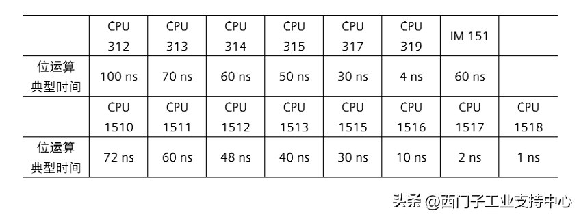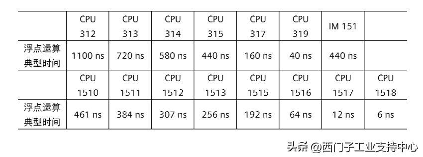 很多时候,虽然功能能满足,程序也能装的下,但是CPU扫描周期长会影响产线节拍。这时就需要考虑CPU运算速度。一般来说,运算速度可以用位运算时间和浮点运算时间来衡量,表2和表3列举出了每一种CPU(1500版本)的位运算和浮点运算典型时间的对比,对照表1的替代方案来说,都可以做到运算速度显著提升。