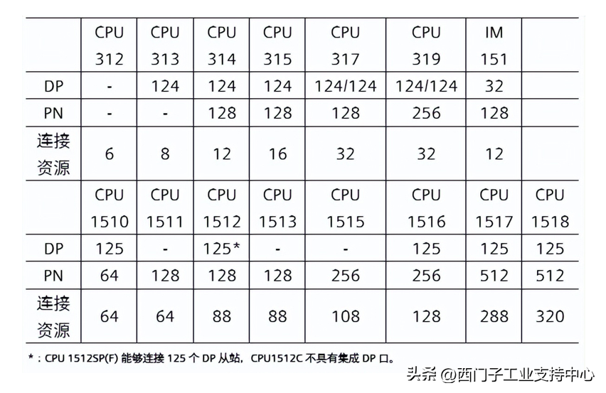 CPU都有其内置通信资源,包括PROFIBUSDP从站数量、IO设备数量、连接资源(S7、开放式通信、HMI等)等,替代时通常需要考虑。和运算速度一样,新一代S7-1500的通信连接资源要显著高于表1对应的S7-300,参考表4所示(版本)。即使是CPU317与CPU319可能会因为同时支持两个DP网络带来的更多DP从站,S7-1500系列也可以通过增加CM1542-5扩展模块去连接更多的DP从站。