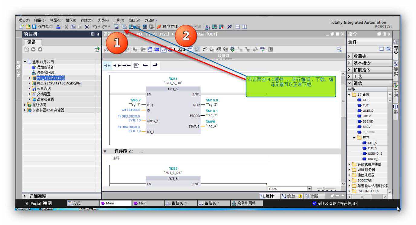 对博图V13S7-1200与S7-300PLC以太网通信演示
