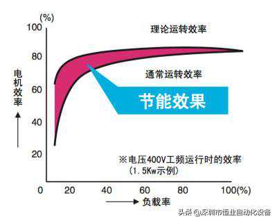 电机负载越轻,效率越低。在节能控制下,将低效率提高到接近根据史坦麦兹的电机特性计算法所得的理论