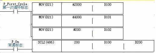 在执行SCL指令前先用MOV指令对DM0-DM3里分别赋值0,0,100,1770。之后SCL指令就能把输入的模拟量值定标成0-100的距离值了。