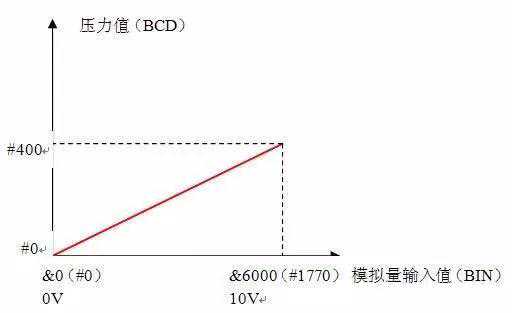 条件:欧姆龙PLC变送器的输出信号为0-10V,对应压力为0-400MPa;CP1H的模拟量输入量程设置为0-10V,分辨率选择6000。
