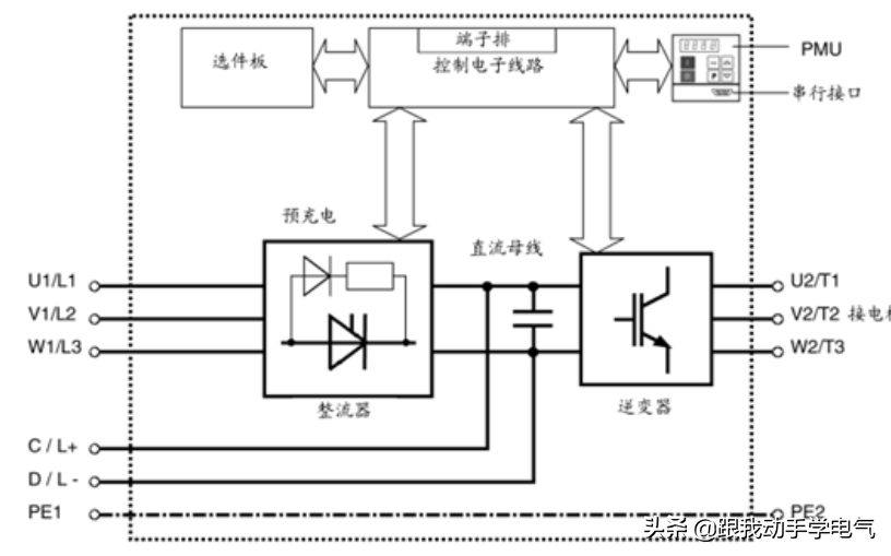 变频器的直流母线电容器在设备上电前两端电压为零,在设备上电的瞬间相当于短路,会产生很大的充电电流,变频器整流桥的功率器件很容易造成损坏。因此需要在预充电过程中在充电回路串联预充电电阻,对预充电电流的大小进行限制。
