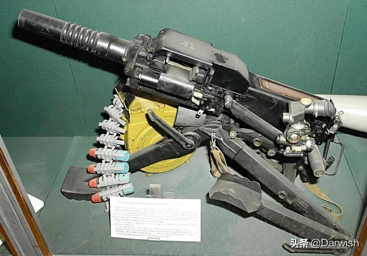 《1991年——AGS-17型》AGS-17型是苏联70年代的自动榴弹发射器,发射30x29mm的榴弹,拥有达到30发的弹容载弹量,拥有1700米的最大射程,主要以三角架和车载的步兵支援形式服役,也有直升机搭载等的变体版本。