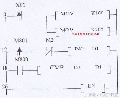 (2)在这个程序的基础上进行改编,当D1当前值大于200时,程序停止运行。请将改编的程序写在原程序旁的空白处。