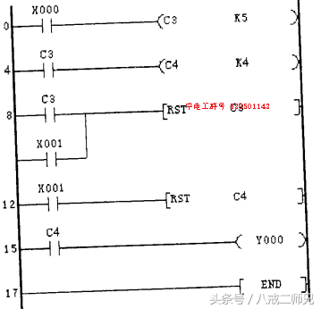4、运行右图程序X0、Xl为按钮控制,YO控制灯,问x0至少应吸合多少次,Y0控制的灯才亮?