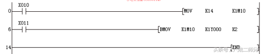 25、按下X10,执行MOV指令,则M10—M13中哪个元件得电?