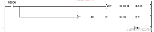 5、CC—Link网络中,Q型主站设定D1000是从站的RX区域首地址,D1040是从站的RWr区域首地址,问3从站在主站的RX区域D1004~D1005;3从站FX2N的PLC读取Q型主站发给6从站的占用站点为零。设FX2N的CC—Link从站模块号为2。