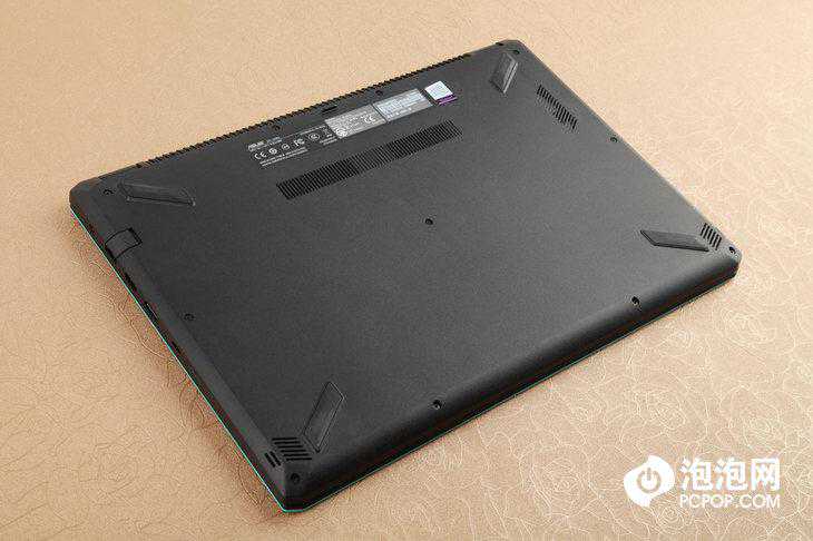 机身底部呈“X”形的脚垫设计让单调的D面也变得动感起来。转轴下方小面积的进风口设计体现了华硕对产品设计的极致追求。