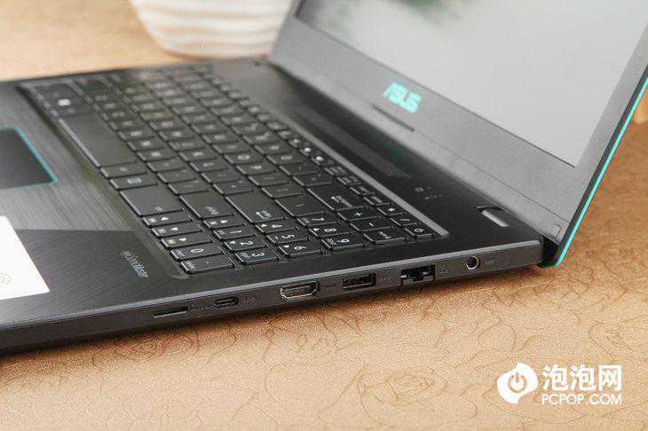 接口方面,华硕顽石热血版YX570ZD的机身右侧配有一个电源接口,一个RJ45网络接口,一个接口,一个HDMI接口,一个USBType-C接口(标准),一个MicroSD读卡器。