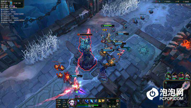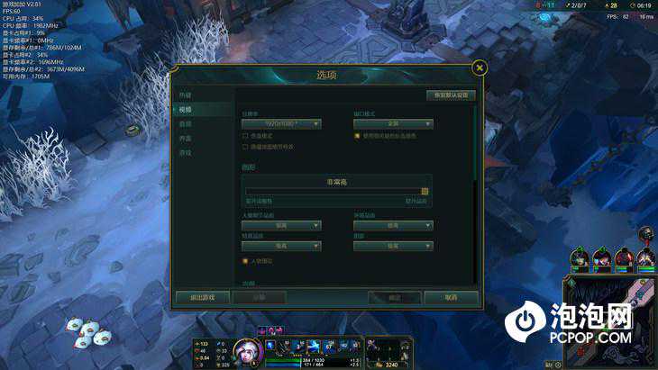 《英雄联盟》是目前市面上最流行的网络游戏之一,我们将画面设置为最高画质,在FHD分辨率下,华硕顽石热血版YX570ZD达到了60FPS的平均帧数,整体的运行非常流畅,即便是在团战频繁的“大乱斗”模式中也没有出现丝毫的卡顿。