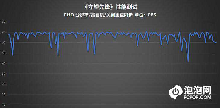 在过气网游《守望先锋》的测试中,我们将画质调整到“高”等级,关闭垂直同步,华硕顽石热血版YX570ZD的平均帧数高达70FPS,虽然偶尔有掉帧现象,但是整体的运行效果非常流畅。