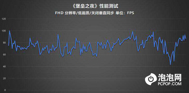 《堡垒之夜》是一款对CPU和显卡的要求都非常高的游戏,华硕顽石热血版YX570ZD在低画质、FHD分辨率下获得了70fps左右的平均帧数表现,整体的画面流畅度非常出色。而且大家要知道,这款游戏的高画质和低画质在视觉观感上的差异并不是很大,即便是低画质也非常精美。