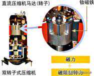 压缩机转子由钕磁铁产生的磁力和磁阻扭转力提供强劲动力,使空调在各种负荷下均能高效运转。
