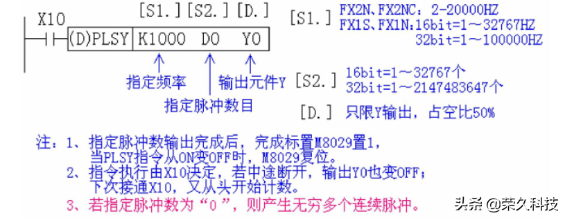 PLSY指令用于产生指定数量的脉冲。助记法为HZ、数目Y出来。指令执行如下: