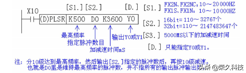 2、带加减速的脉冲输出指令PLSR(FNC59)