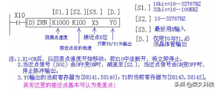 ZRN指令用于校准机械原点。助记法为高速、减速至原点。指令执行如下: